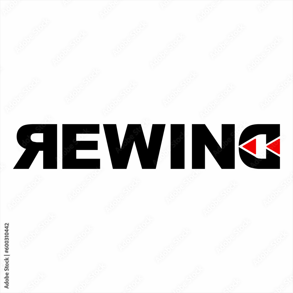 Rewind word design with back arrow on letter E and rewind symbol on