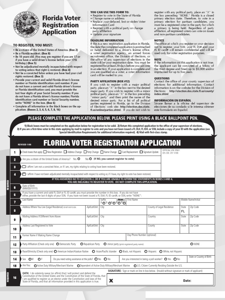 Voter Registration Florida - Submit new voter registration applications no later than 29 days before any election. I affirm that i am not a convicted felon, or if i am, my right to vote has been restored. (for information on felon voting rights, visit division.